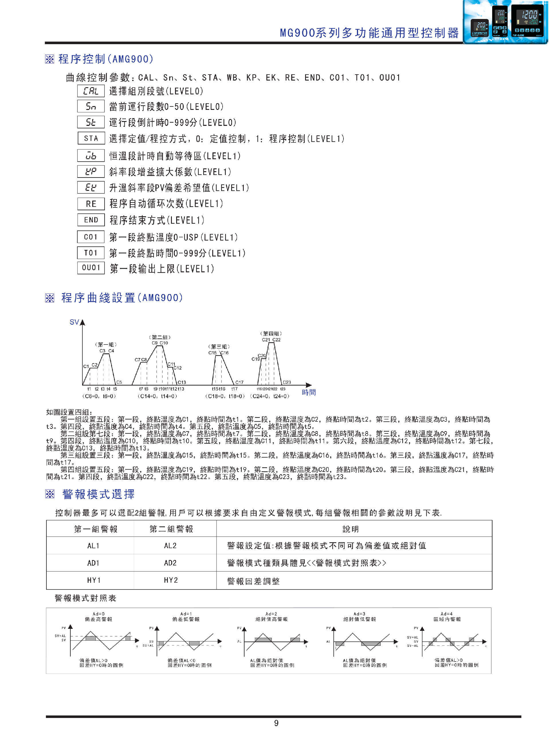 程序拥有温度等待功能WB,程序可根据实际温度PV判断是否走下一段。